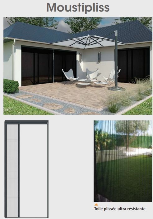 La MoustiPliss est équipée de la toile plissée la plus résistante du marché (résistance aux UV, à l’usure et à la pluie).